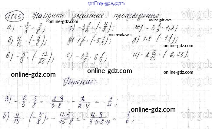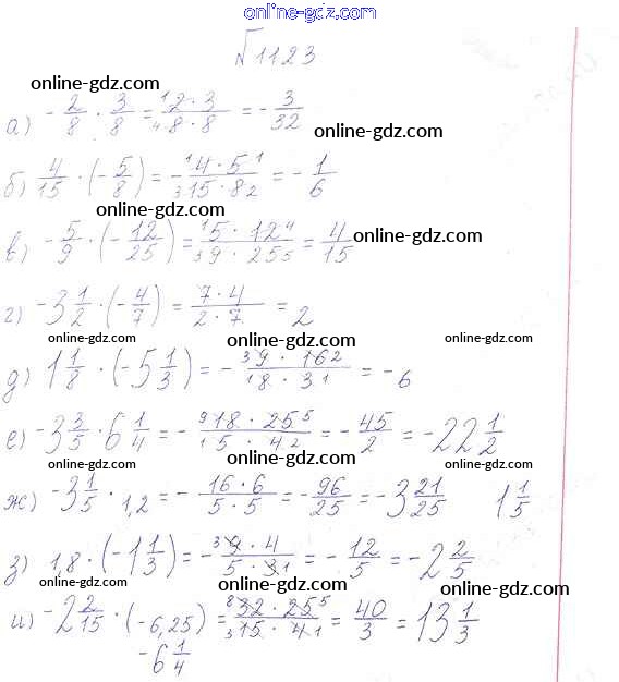 Готовые домашние задания по Математике за 6 класс Учебник Виленкин, Жохов 2014 - §7. Умножение и деление положительных и отрицательных чисел Глава 2 1123