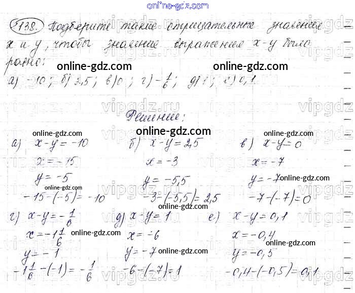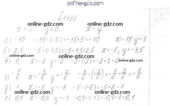 Готовые домашние задания по Математике за 6 класс Учебник Виленкин, Жохов 2014 - §7. Умножение и деление положительных и отрицательных чисел Глава 2 1138