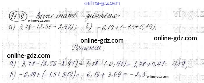 Готовые домашние задания по Математике за 6 класс Учебник Виленкин, Жохов 2014 - §7. Умножение и деление положительных и отрицательных чисел Глава 2 1139