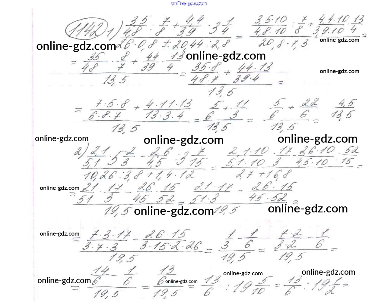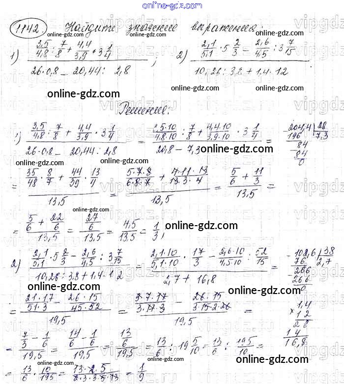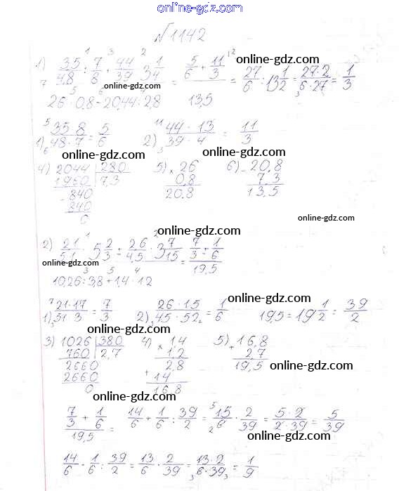 Готовые домашние задания по Математике за 6 класс Учебник Виленкин, Жохов 2014 - §7. Умножение и деление положительных и отрицательных чисел Глава 2 1142