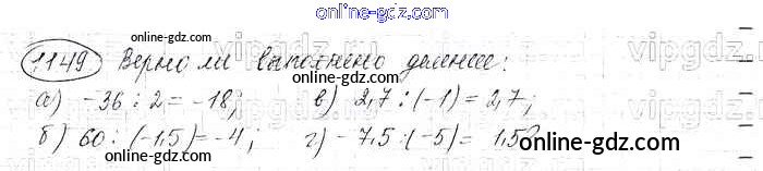 Готовые домашние задания по Математике за 6 класс Учебник Виленкин, Жохов 2014 - §7. Умножение и деление положительных и отрицательных чисел Глава 2 1149