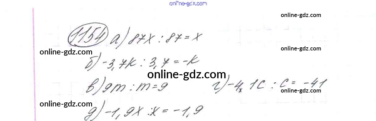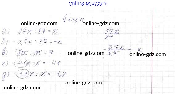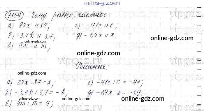 Готовые домашние задания по Математике за 6 класс Учебник Виленкин, Жохов 2014 - §7. Умножение и деление положительных и отрицательных чисел Глава 2 1154