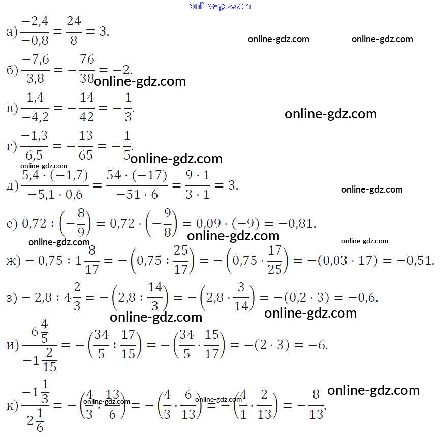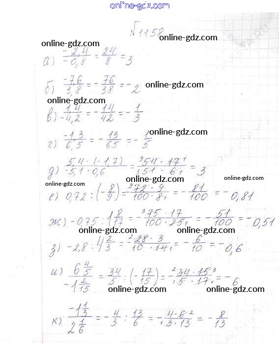 Готовые домашние задания по Математике за 6 класс Учебник Виленкин, Жохов 2014 - §7. Умножение и деление положительных и отрицательных чисел Глава 2 1158