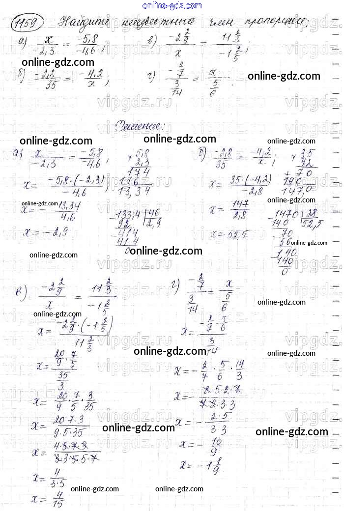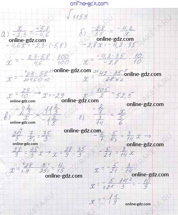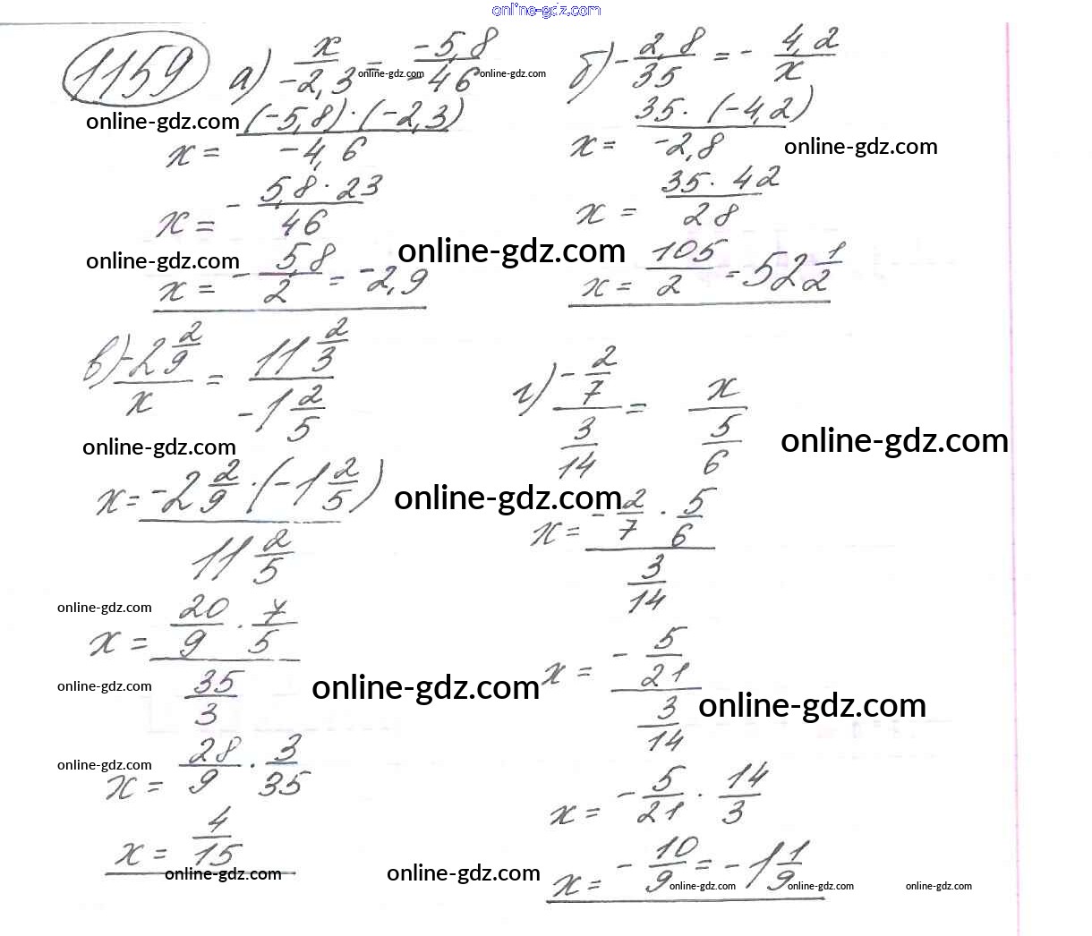 Готовые домашние задания по Математике за 6 класс Учебник Виленкин, Жохов 2014 - §7. Умножение и деление положительных и отрицательных чисел Глава 2 1159