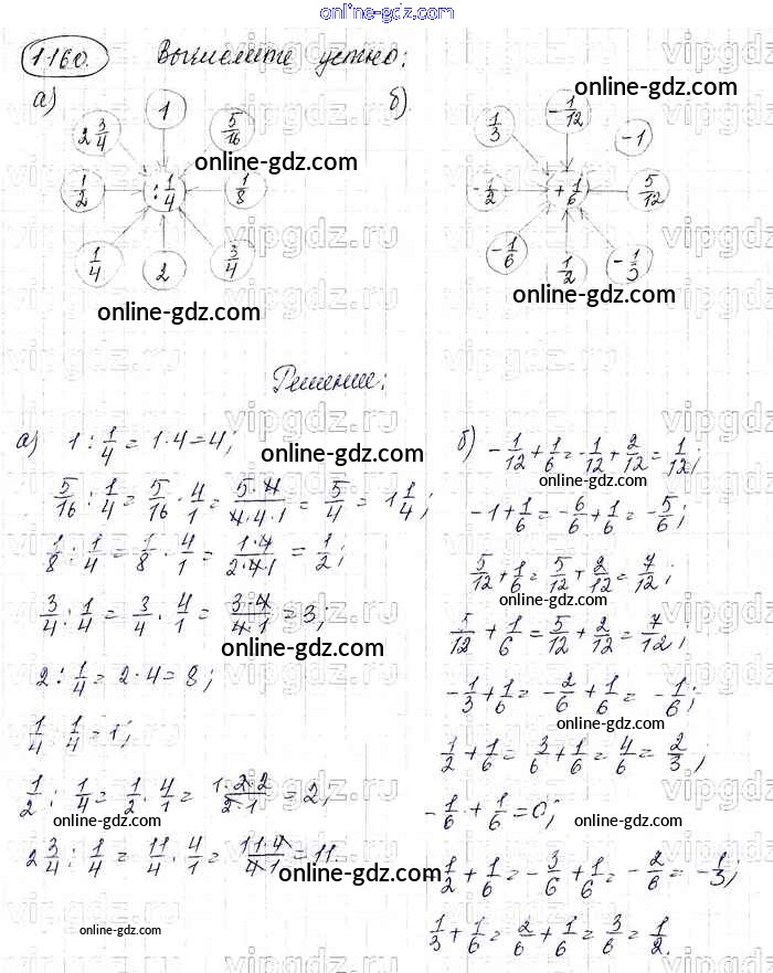 Готовые домашние задания по Математике за 6 класс Учебник Виленкин, Жохов 2014 - §7. Умножение и деление положительных и отрицательных чисел Глава 2 1160