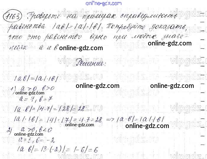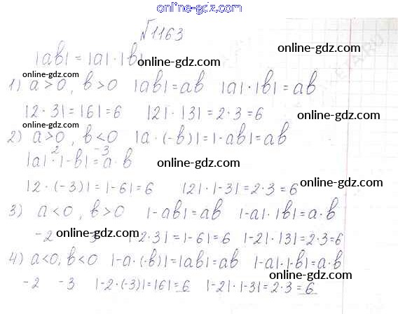 Готовые домашние задания по Математике за 6 класс Учебник Виленкин, Жохов 2014 - §7. Умножение и деление положительных и отрицательных чисел Глава 2 1163