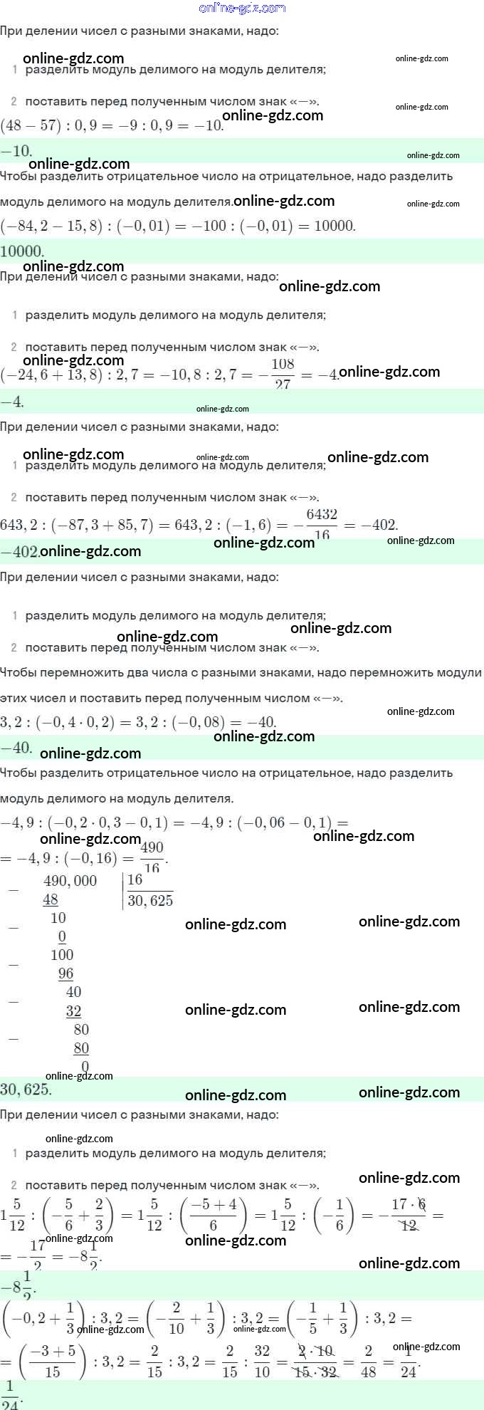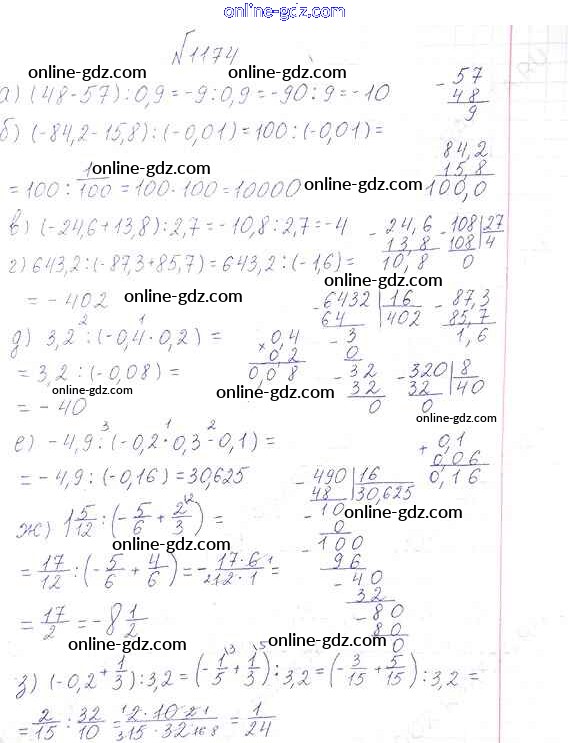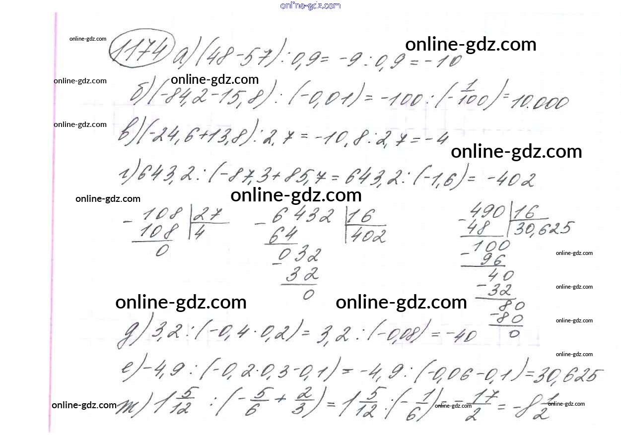 Готовые домашние задания по Математике за 6 класс Учебник Виленкин, Жохов 2014 - §7. Умножение и деление положительных и отрицательных чисел Глава 2 1174