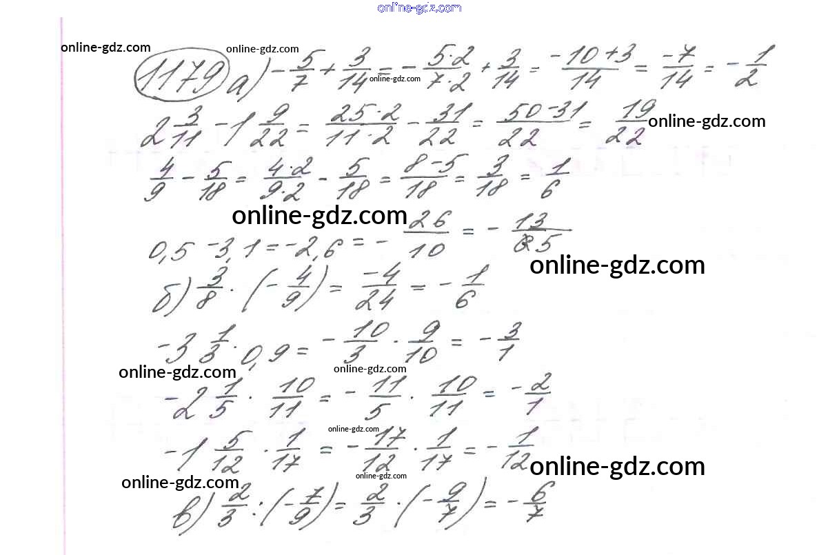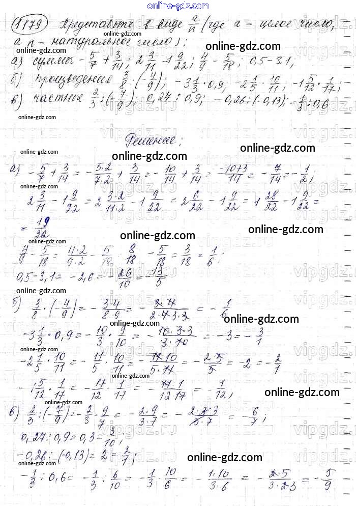 Готовые домашние задания по Математике за 6 класс Учебник Виленкин, Жохов 2014 - §7. Умножение и деление положительных и отрицательных чисел Глава 2 1179