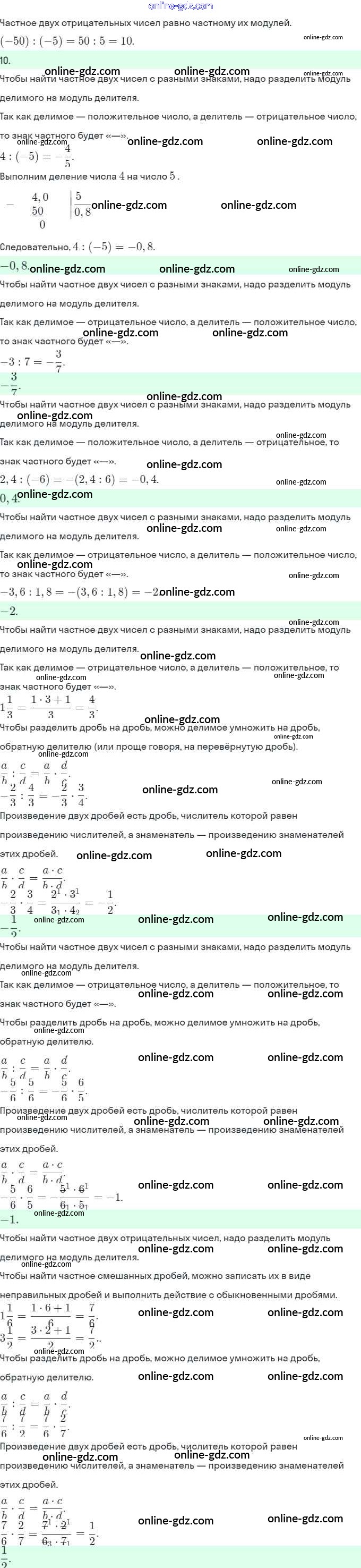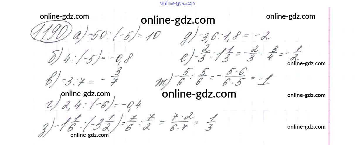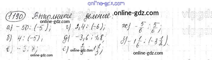Готовые домашние задания по Математике за 6 класс Учебник Виленкин, Жохов 2014 - §7. Умножение и деление положительных и отрицательных чисел Глава 2 1190