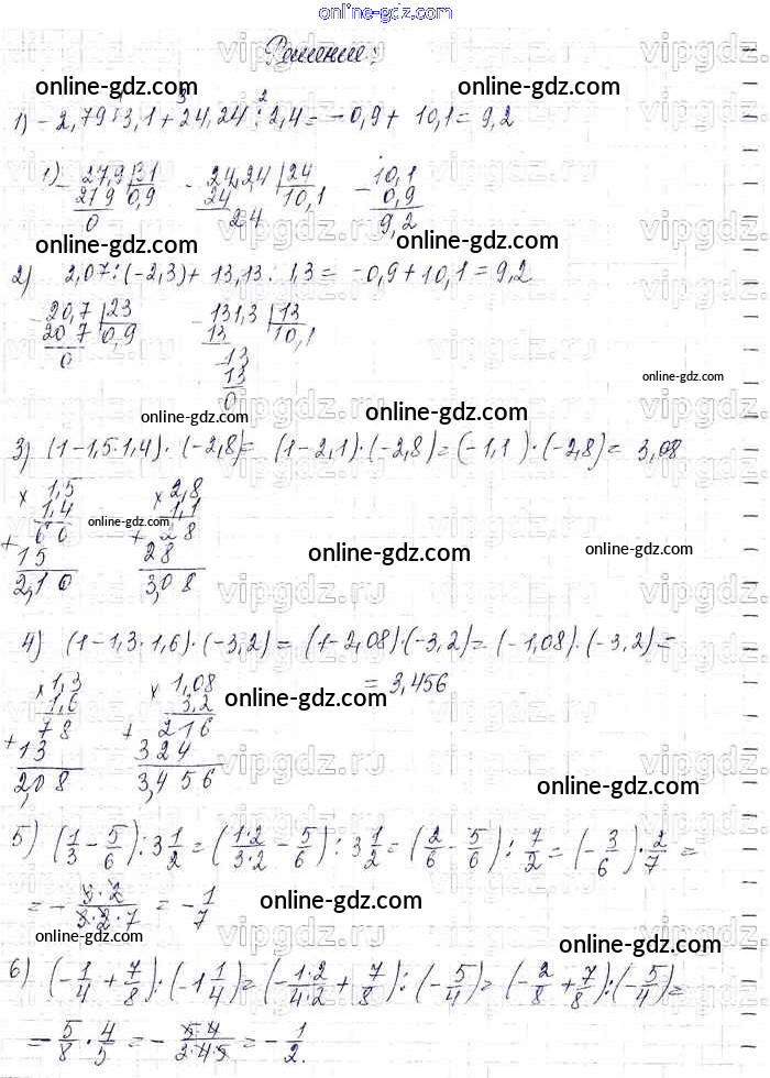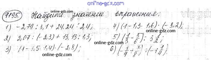 Готовые домашние задания по Математике за 6 класс Учебник Виленкин, Жохов 2014 - §7. Умножение и деление положительных и отрицательных чисел Глава 2 1195
