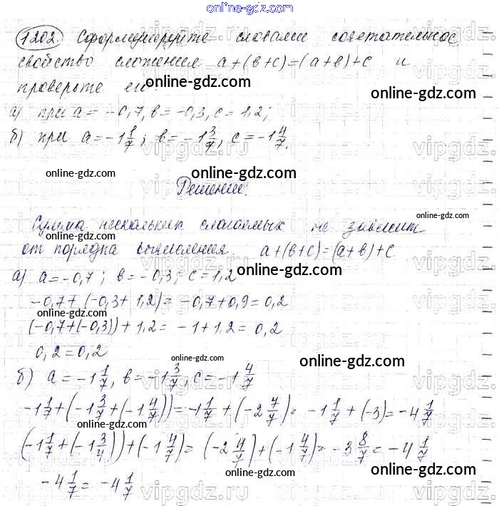 Готовые домашние задания по Математике за 6 класс Учебник Виленкин, Жохов 2014 - §7. Умножение и деление положительных и отрицательных чисел Глава 2 1202