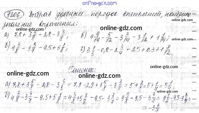 Готовые домашние задания по Математике за 6 класс Учебник Виленкин, Жохов 2014 - §7. Умножение и деление положительных и отрицательных чисел Глава 2 1206