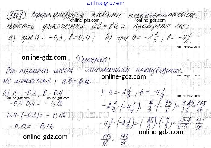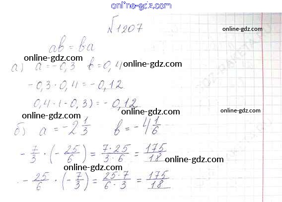 Готовые домашние задания по Математике за 6 класс Учебник Виленкин, Жохов 2014 - §7. Умножение и деление положительных и отрицательных чисел Глава 2 1207