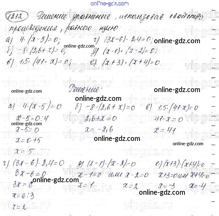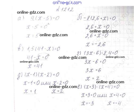 Готовые домашние задания по Математике за 6 класс Учебник Виленкин, Жохов 2014 - §7. Умножение и деление положительных и отрицательных чисел Глава 2 1212