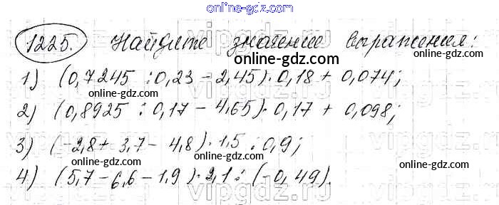 Готовые домашние задания по Математике за 6 класс Учебник Виленкин, Жохов 2014 - §7. Умножение и деление положительных и отрицательных чисел Глава 2 1225