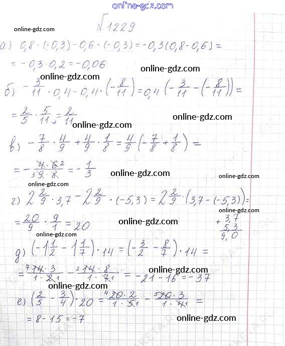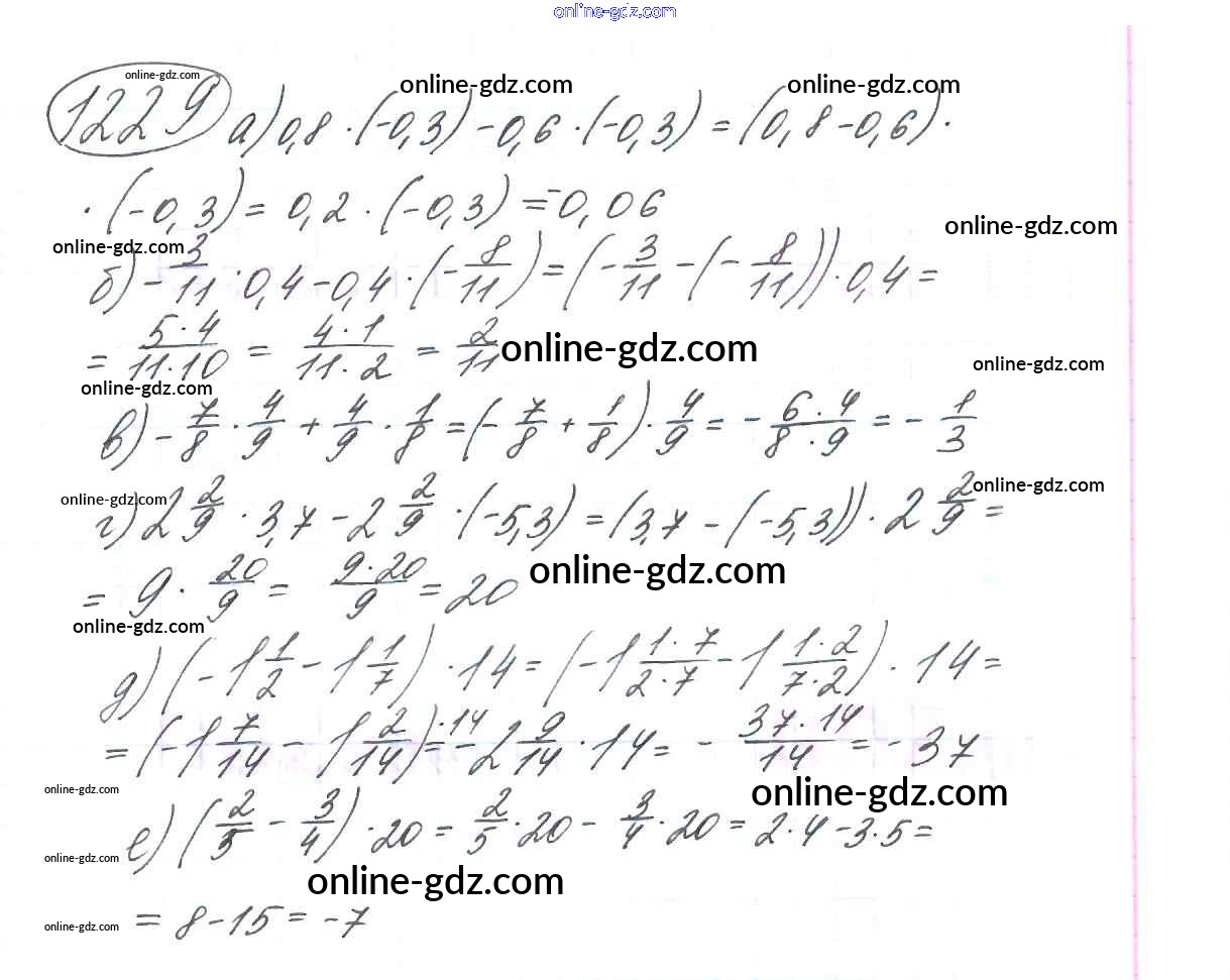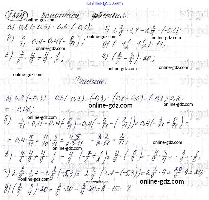 Готовые домашние задания по Математике за 6 класс Учебник Виленкин, Жохов 2014 - §7. Умножение и деление положительных и отрицательных чисел Глава 2 1229