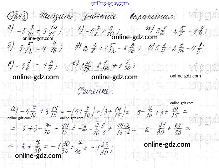Готовые домашние задания по Математике за 6 класс Учебник Виленкин, Жохов 2014 - §8. Решение уравнений Глава 2 1243
