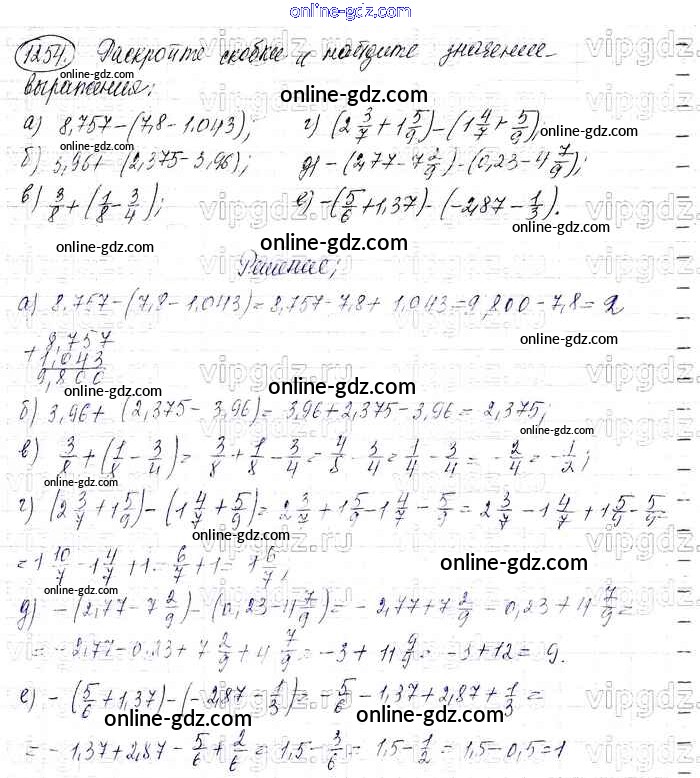 Готовые домашние задания по Математике за 6 класс Учебник Виленкин, Жохов 2014 - §8. Решение уравнений Глава 2 1254