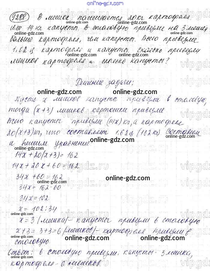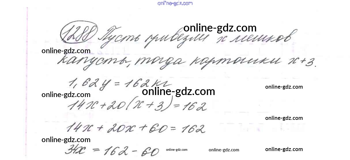 Готовые домашние задания по Математике за 6 класс Учебник Виленкин, Жохов 2014 - §8. Решение уравнений Глава 2 1288