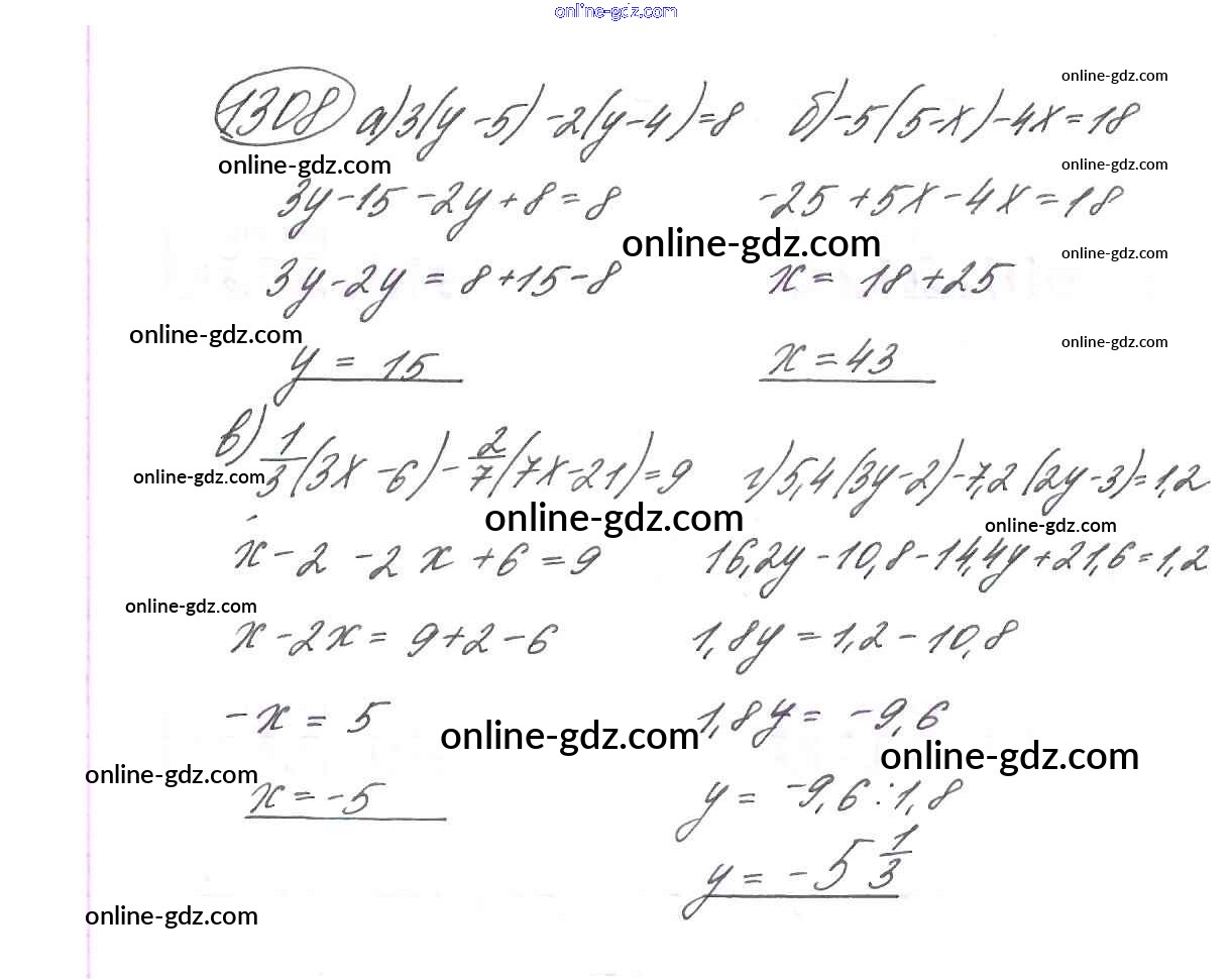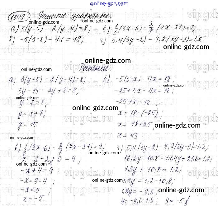 Готовые домашние задания по Математике за 6 класс Учебник Виленкин, Жохов 2014 - §8. Решение уравнений Глава 2 1308