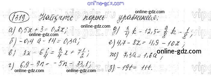 Готовые домашние задания по Математике за 6 класс Учебник Виленкин, Жохов 2014 - §8. Решение уравнений Глава 2 1319