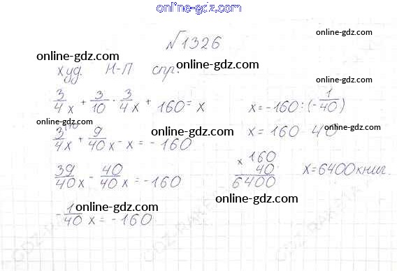 Готовые домашние задания по Математике за 6 класс Учебник Виленкин, Жохов 2014 - §8. Решение уравнений Глава 2 1326