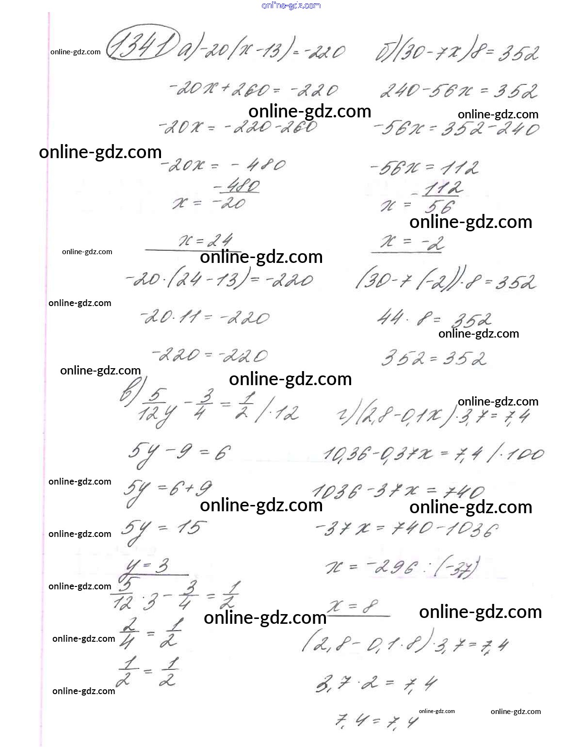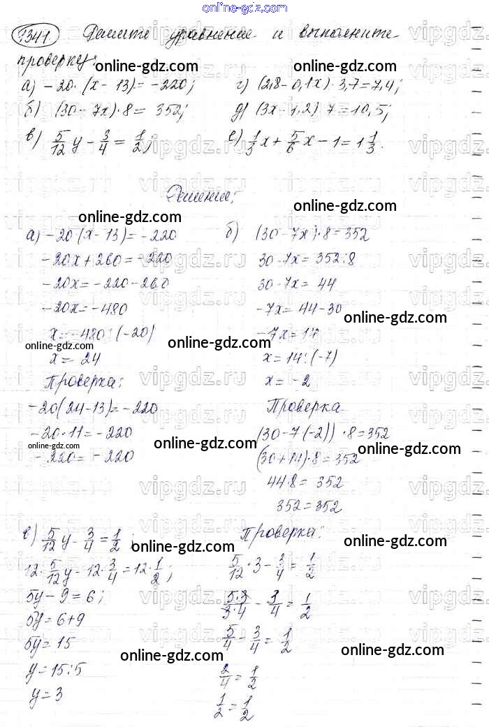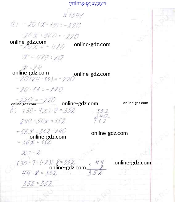 Готовые домашние задания по Математике за 6 класс Учебник Виленкин, Жохов 2014 - §8. Решение уравнений Глава 2 1341