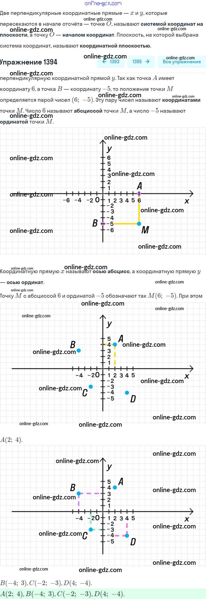 Готовые домашние задания по Математике за 6 класс Учебник Виленкин, Жохов 2014 - §9. Координаты на плоскости Глава 2 1394