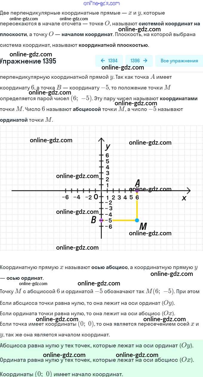 Готовые домашние задания по Математике за 6 класс Учебник Виленкин, Жохов 2014 - §9. Координаты на плоскости Глава 2 1395