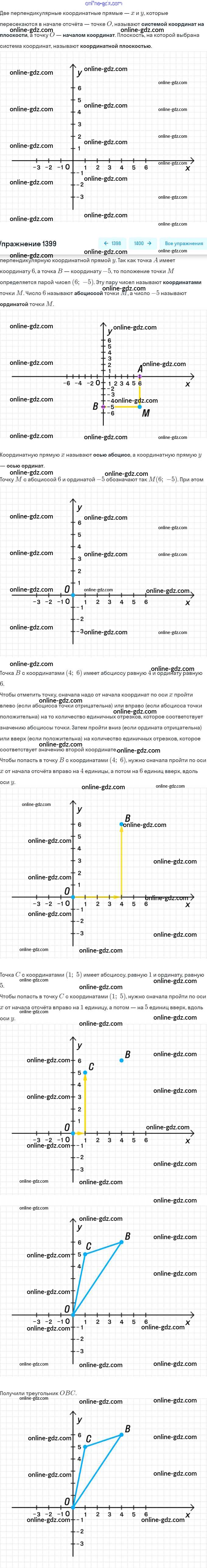 Готовые домашние задания по Математике за 6 класс Учебник Виленкин, Жохов 2014 - §9. Координаты на плоскости Глава 2 1399