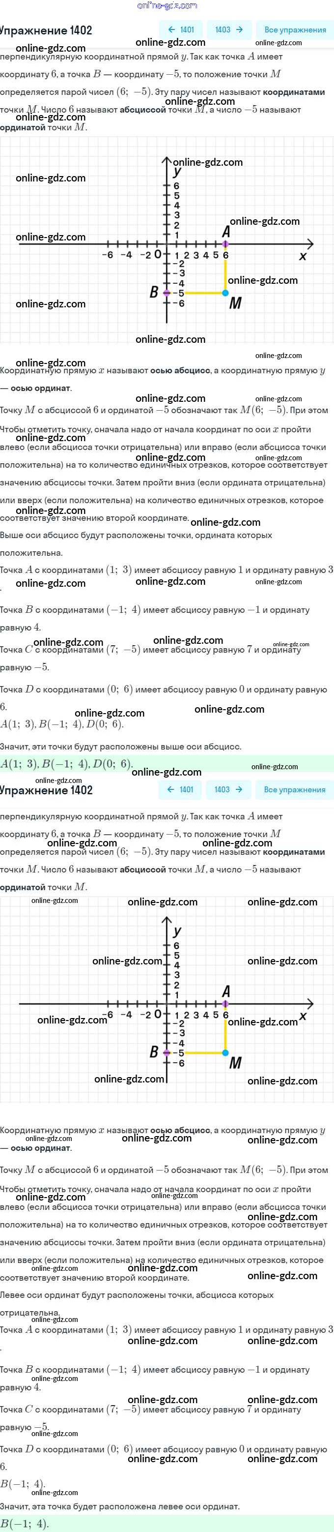 Готовые домашние задания по Математике за 6 класс Учебник Виленкин, Жохов 2014 - §9. Координаты на плоскости Глава 2 1402