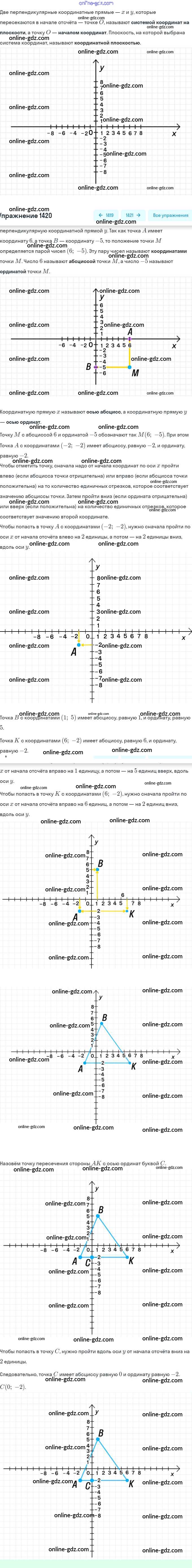 Готовые домашние задания по Математике за 6 класс Учебник Виленкин, Жохов 2014 - §9. Координаты на плоскости Глава 2 1420