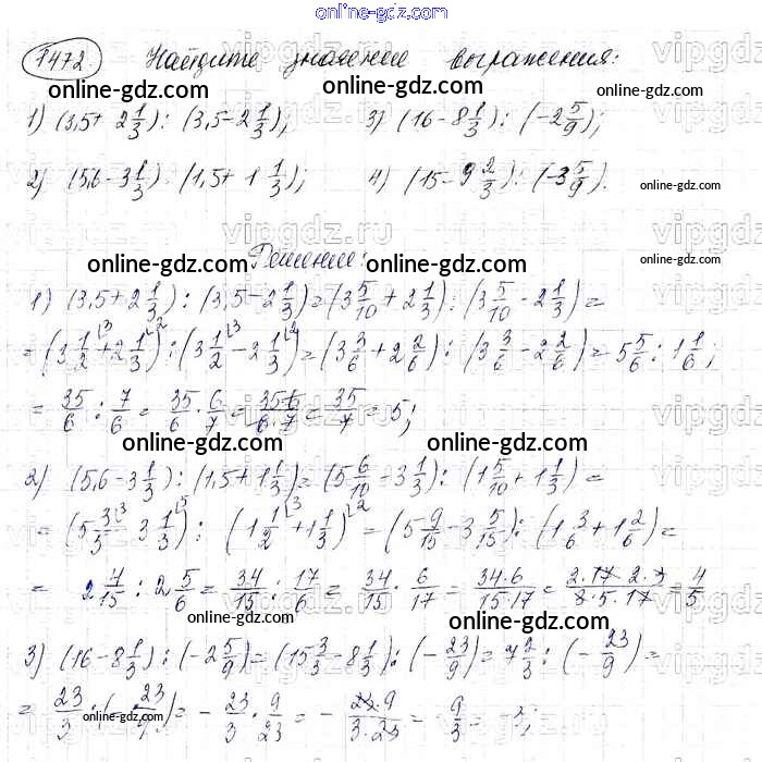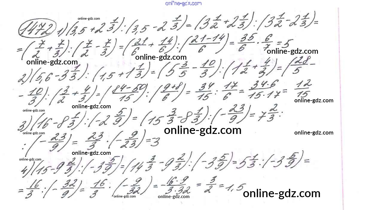 Готовые домашние задания по Математике за 6 класс Учебник Виленкин, Жохов 2014 - §9. Координаты на плоскости Глава 2 1472