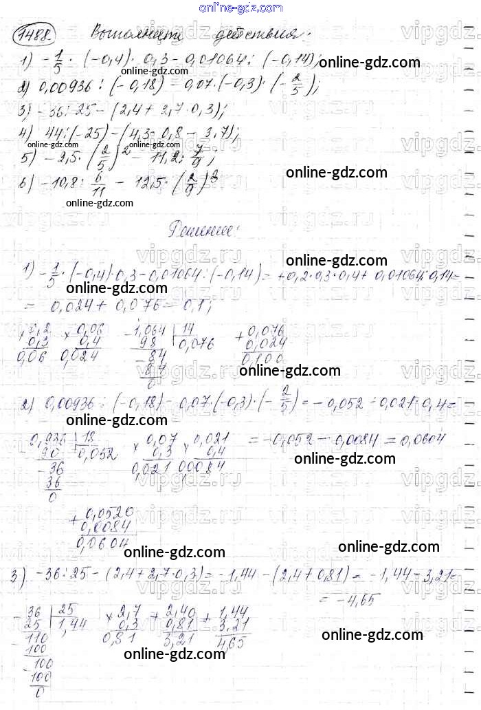 Готовые домашние задания по Математике за 6 класс Учебник Виленкин, Жохов 2014 - §9. Координаты на плоскости Глава 2 1488