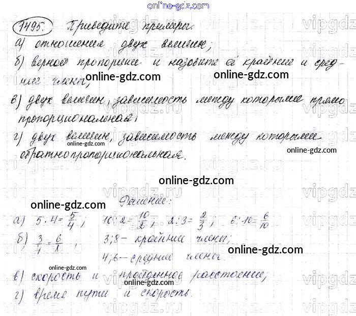 Готовые домашние задания по Математике за 6 класс Учебник Виленкин, Жохов 2014 - §9. Координаты на плоскости Глава 2 1495