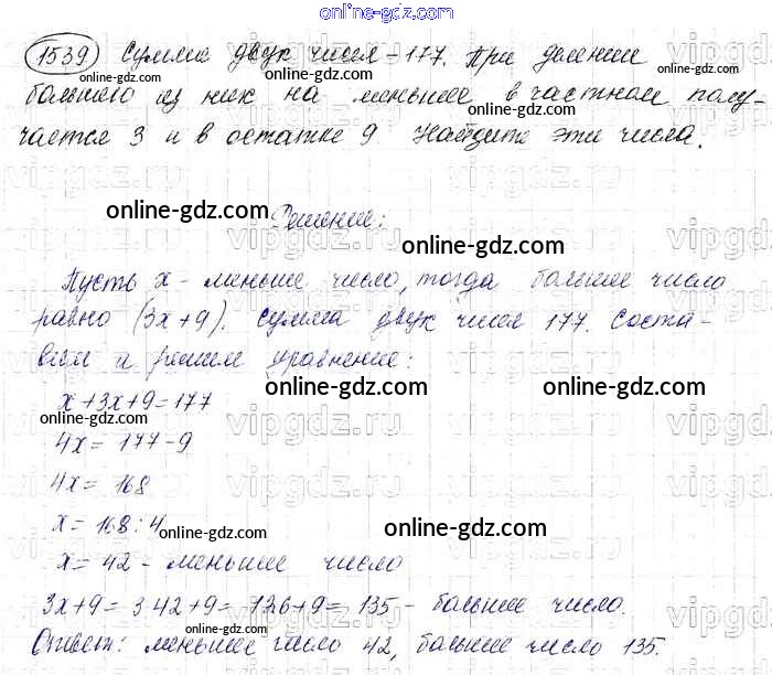 Готовые домашние задания по Математике за 6 класс Учебник Виленкин, Жохов 2014 - §9. Координаты на плоскости Глава 2 1539