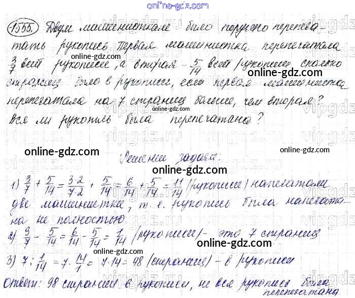 Готовые домашние задания по Математике за 6 класс Учебник Виленкин, Жохов 2014 - §9. Координаты на плоскости Глава 2 1555
