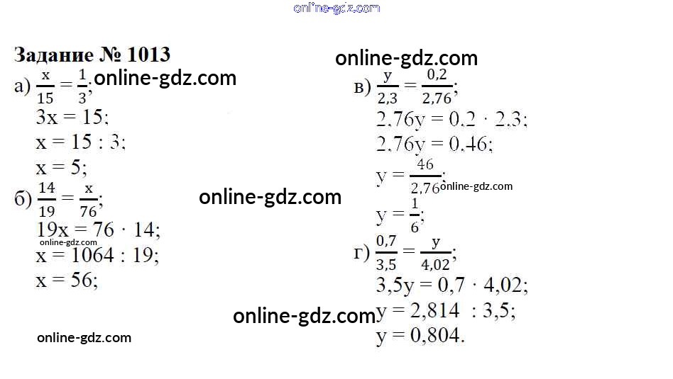 Готовые домашние задания по Математике за 6 класс Учебник Зубарева, Мордкович 2015 - Упражнения 1013