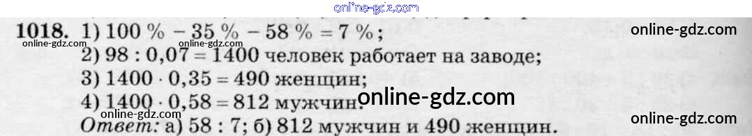 Готовые домашние задания по Математике за 6 класс Учебник Зубарева, Мордкович 2015 - Упражнения 1018