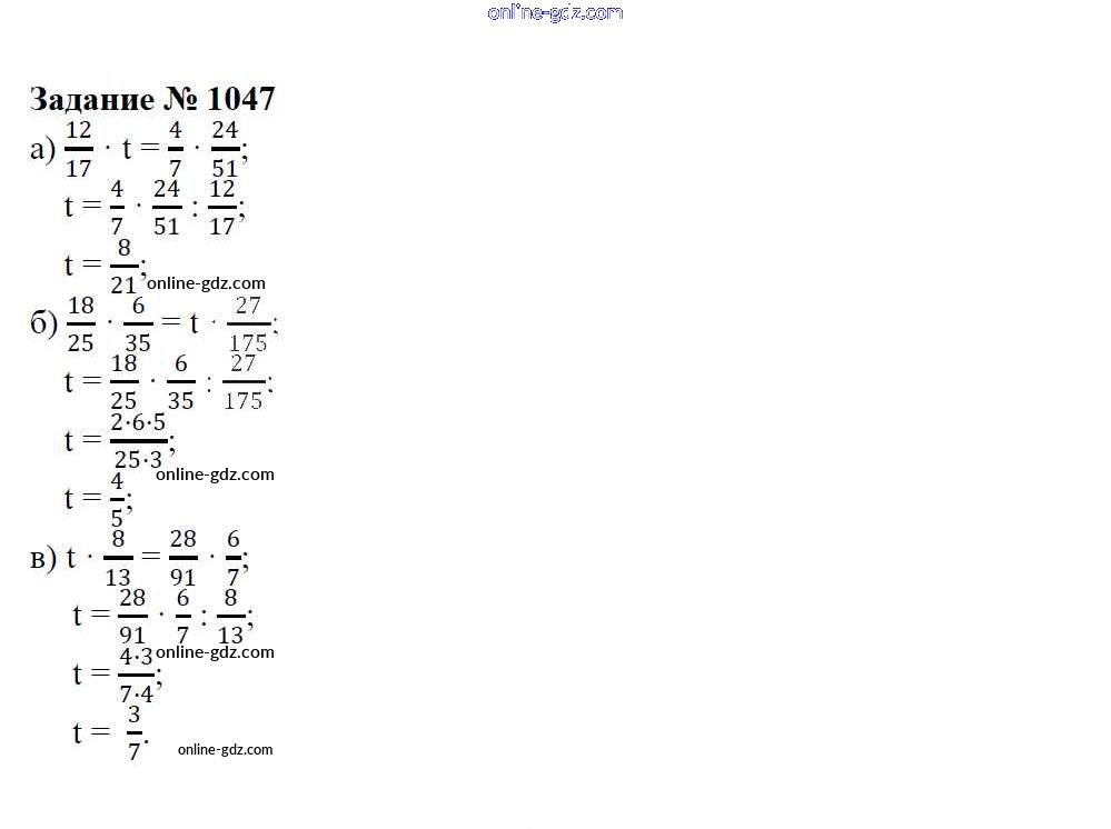 Готовые домашние задания по Математике за 6 класс Учебник Зубарева, Мордкович 2015 - Упражнения 1047