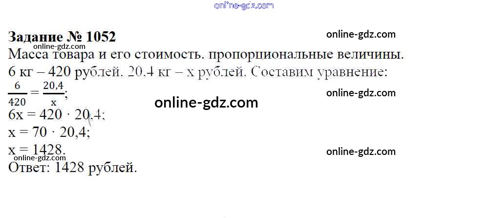 Готовые домашние задания по Математике за 6 класс Учебник Зубарева, Мордкович 2015 - Упражнения 1052