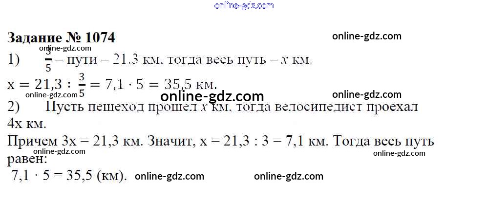 Готовые домашние задания по Математике за 6 класс Учебник Зубарева, Мордкович 2015 - Упражнения 1074