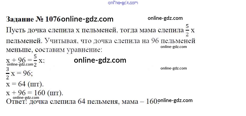 Готовые домашние задания по Математике за 6 класс Учебник Зубарева, Мордкович 2015 - Упражнения 1076