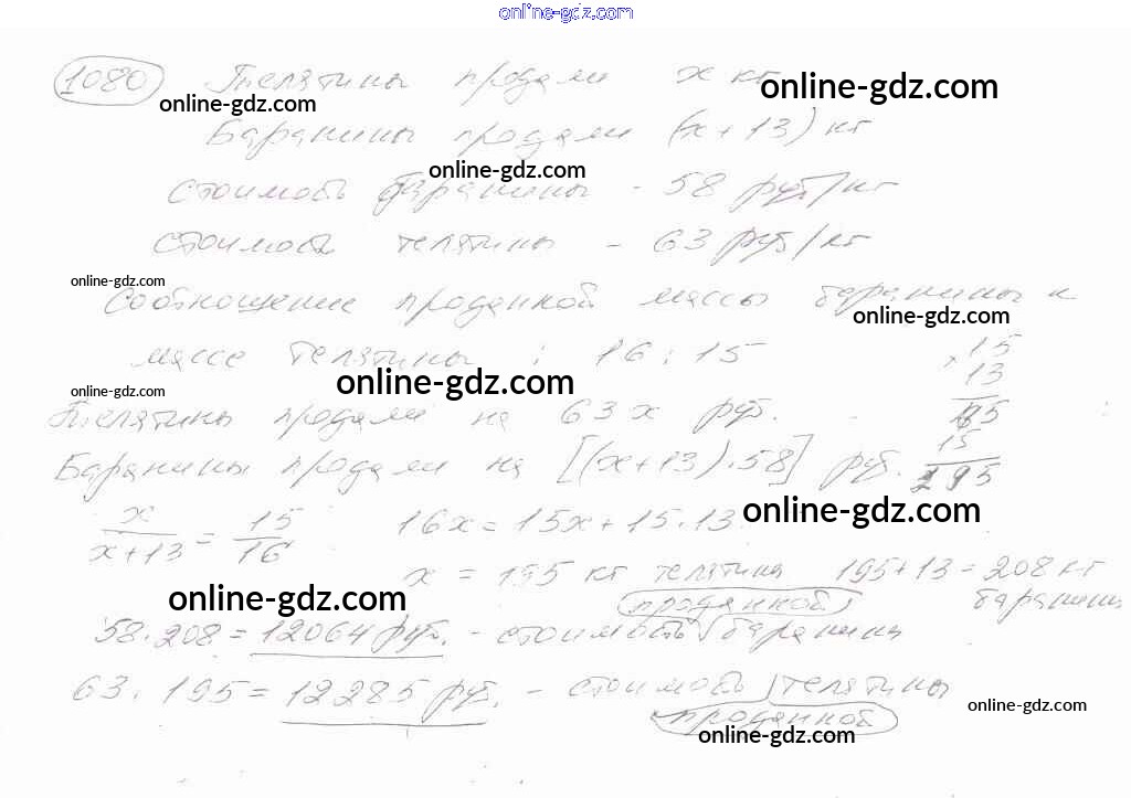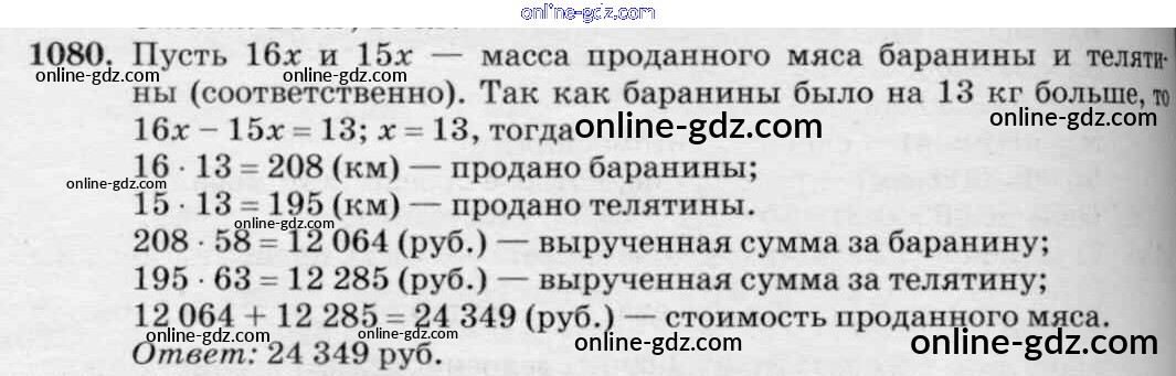 Готовые домашние задания по Математике за 6 класс Учебник Зубарева, Мордкович 2015 - Упражнения 1080