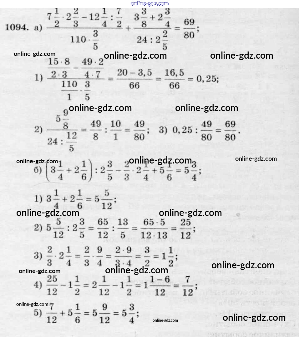Готовые домашние задания по Математике за 6 класс Учебник Зубарева, Мордкович 2015 - Упражнения 1094