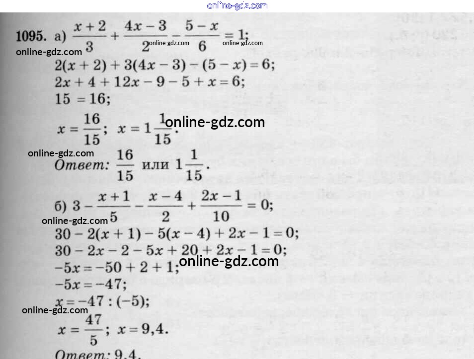 Готовые домашние задания по Математике за 6 класс Учебник Зубарева, Мордкович 2015 - Упражнения 1095