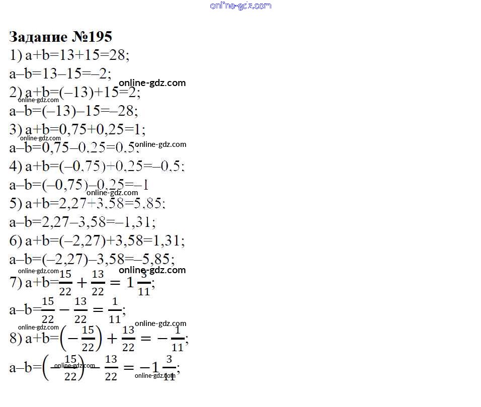 Готовые домашние задания по Математике за 6 класс Учебник Зубарева, Мордкович 2015 - Упражнения 195