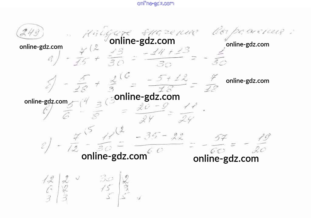Готовые домашние задания по Математике за 6 класс Учебник Зубарева, Мордкович 2015 - Упражнения 249
