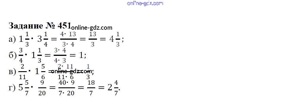 Готовые домашние задания по Математике за 6 класс Учебник Зубарева, Мордкович 2015 - Упражнения 451
