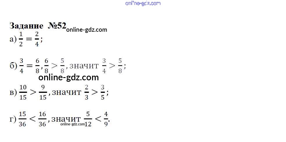 Готовые домашние задания по Математике за 6 класс Учебник Зубарева, Мордкович 2015 - Упражнения 52